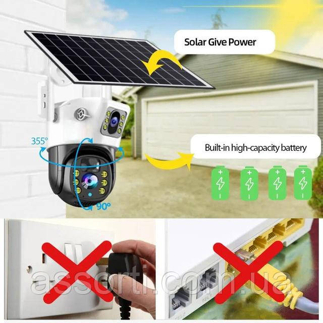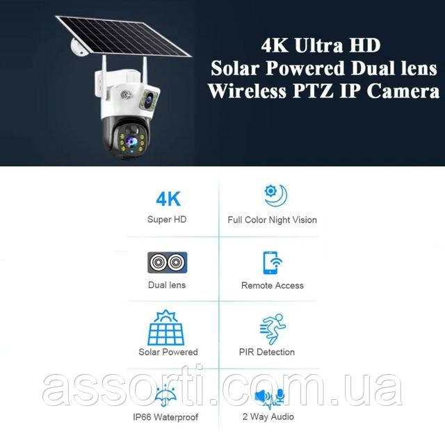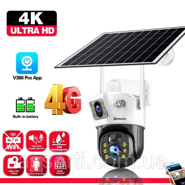 4G-камера V36 зовнішнього спостереження 8 Мп з віддаленим доступом сонячна панель (застосунок v380Pro)