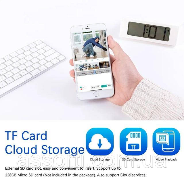 З камерою легко вести віддалений моніторинг і відтворення відео через застосунок V380. Вбудований мікрофон і динамік забезпечують двосторонній аудіозв'язок у реальному часі.