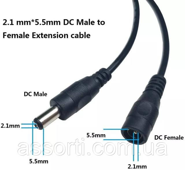 Подовжувач живлення постійного струму DC 12В 5,5 мм x 2,1 мм, довжина 10 метрів