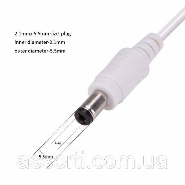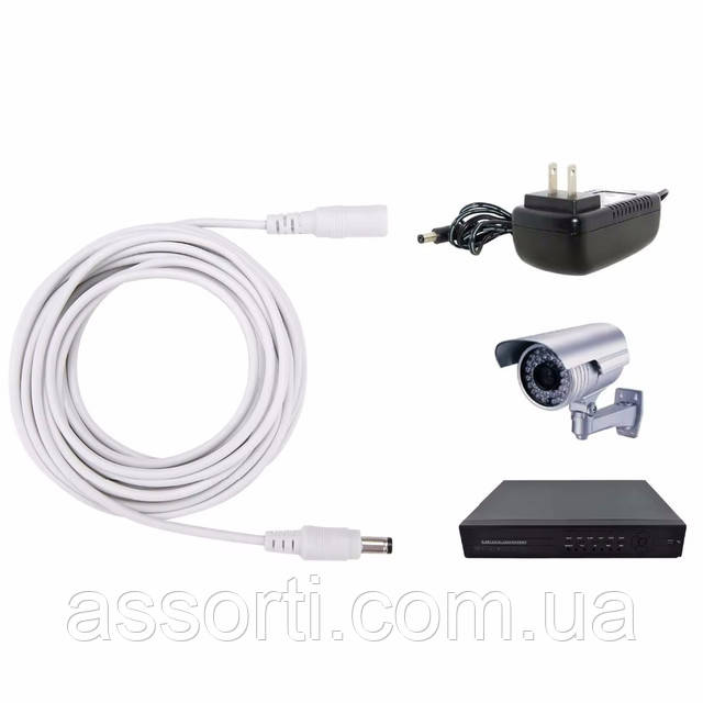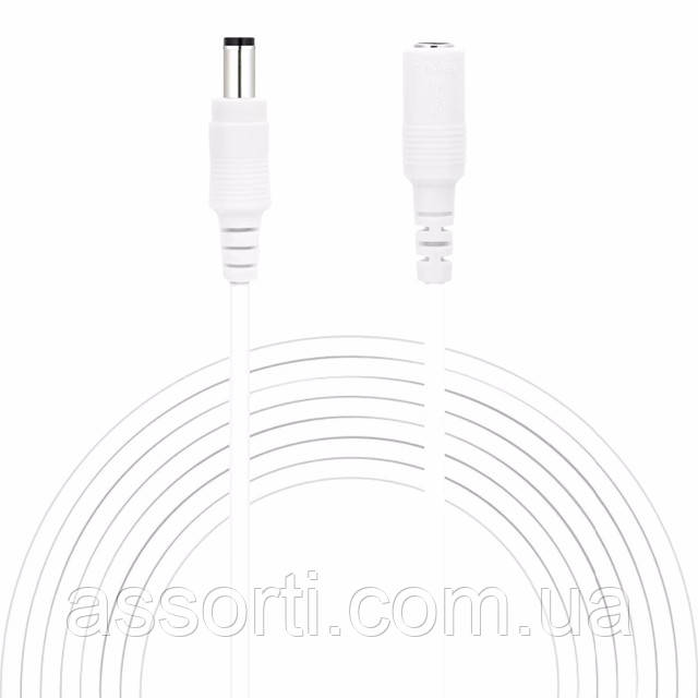 Універсальний кабель подовжувач живлення 12 V білий white 10 метрів 12 В 5.5×2.1mm