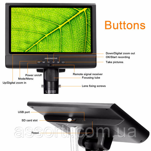 Andonstar AD209 - це багатофункціональний портативний цифровий мікроскоп, який оснащений великим ємним дисплеєм. Дозволяє робити знімки, знімати відео у високій якості та бачити результати на дисплеї відразу, а також зберігати їх на картку пам'яті.